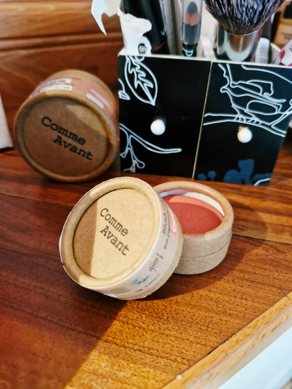 INCI Blush brique : Astrocaryum Murumuru Seed Butter, Glyceryl isostearate, Zinc Oxide, Euphorbia Cerifera Cera, Capryloyl Glycerin / Sebacic Acid Copolymer, CI 77491, Isoamyl Laurate