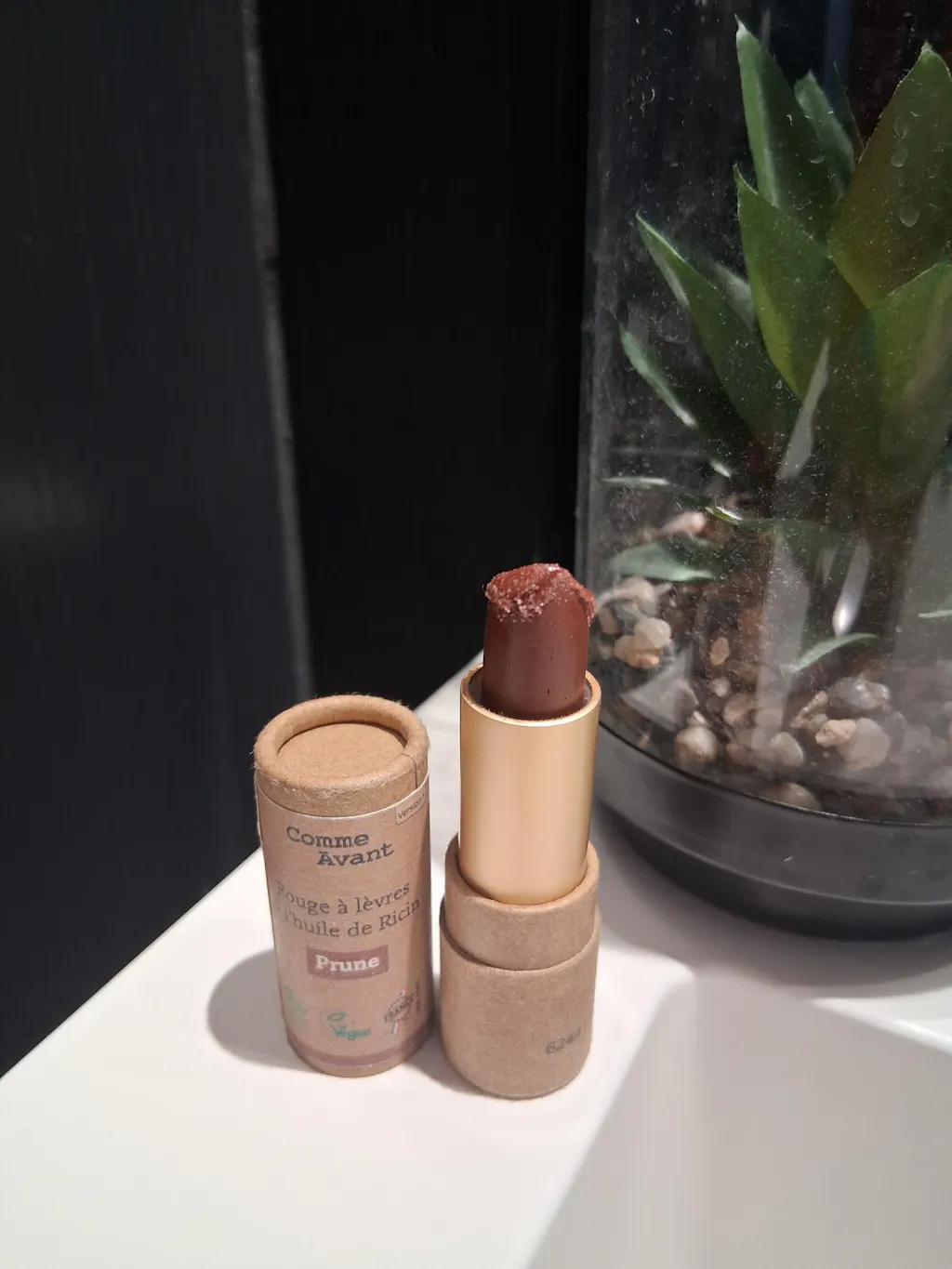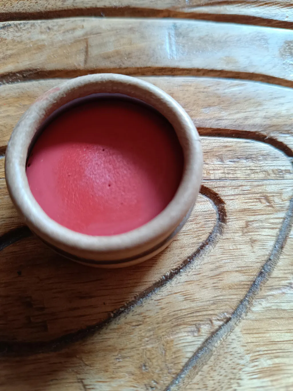 Ingrédients : beurre de murumuru, émollient d'origine végétale, pigment rouge minéral, cire de candelilla, agent filmogène végétal, mica