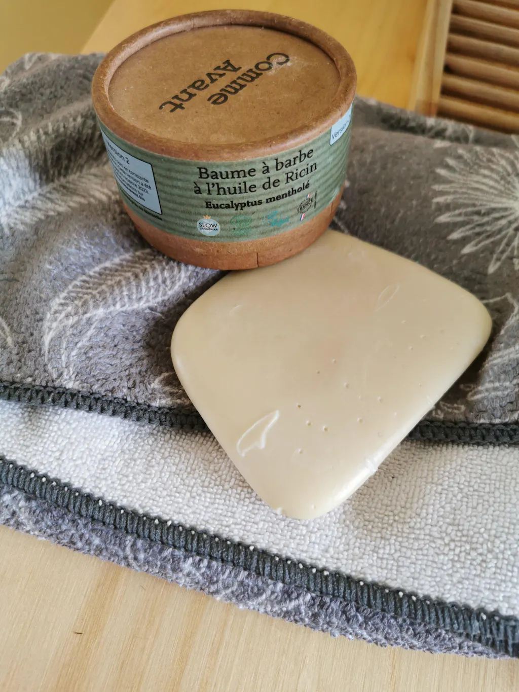 Notre baume à barbe solide à l'huile de ricin est un précieux allié pour prendre soin de sa barbe et la nourrir sans laisser de résidu gras. Made in France et certifié COSMOS Organic, il se compose de 4 ingrédients : l'huile de ricin, l'huile de jojoba, le beurre de Murumuru et la cire de tournesol. Sa texture huileuse agréable à utiliser concentre plusieurs principes actifs qui permettent de fortifier et densifier chaque poil. Contrairement à un baume solide issu du commerce, notre baume ne contient aucune molécule polluante et mise sur un processus naturel et écologique qui ne produit aucun déchet inutile et polluant. Prix initial : 13.90 €