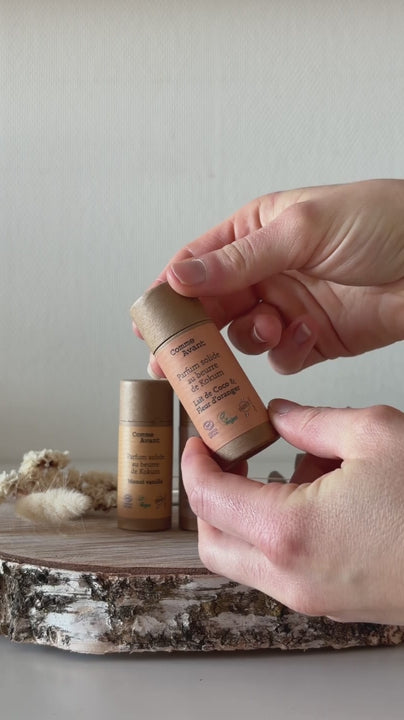 Parfum bio solide naturel sans alcool pour femme sucré et fruité