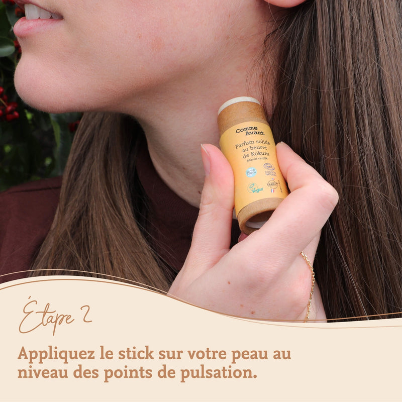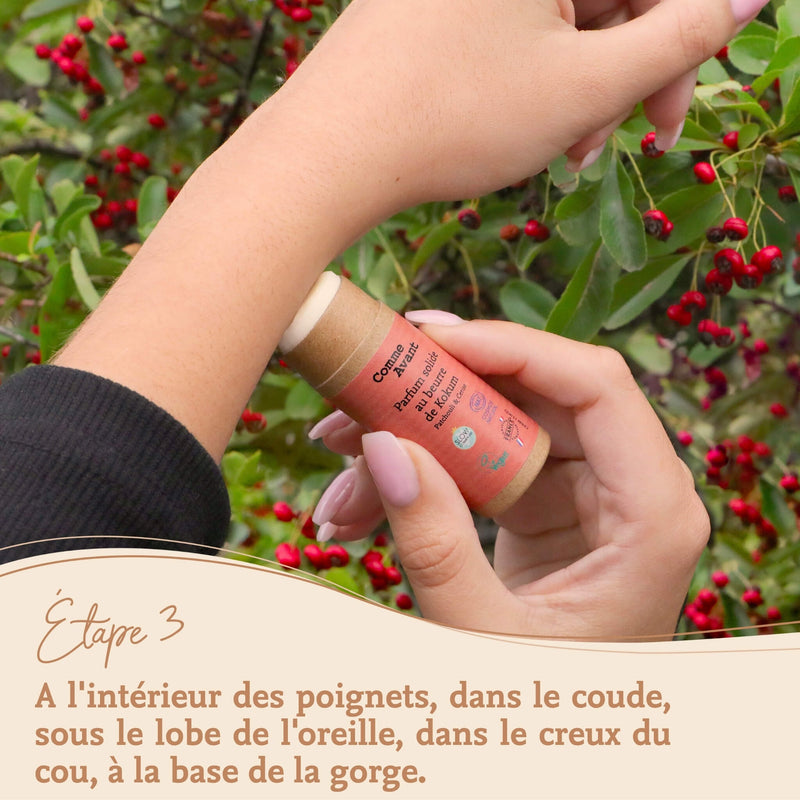 Parfum bio solide naturel sans alcool pour femme sucré et fruité