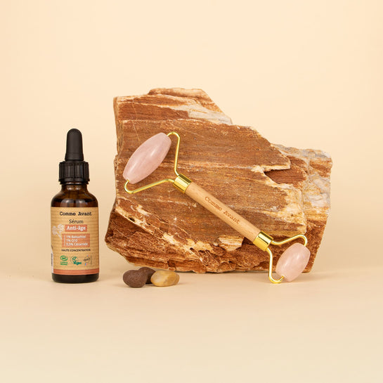 Découvrez notre rouleau de massage du visage en quartz rose et en bois de hêtre, un accessoire de beauté ancestral et zéro déchet qui stimule la circulation sanguine et draine la peau pour un teint plus éclatant.