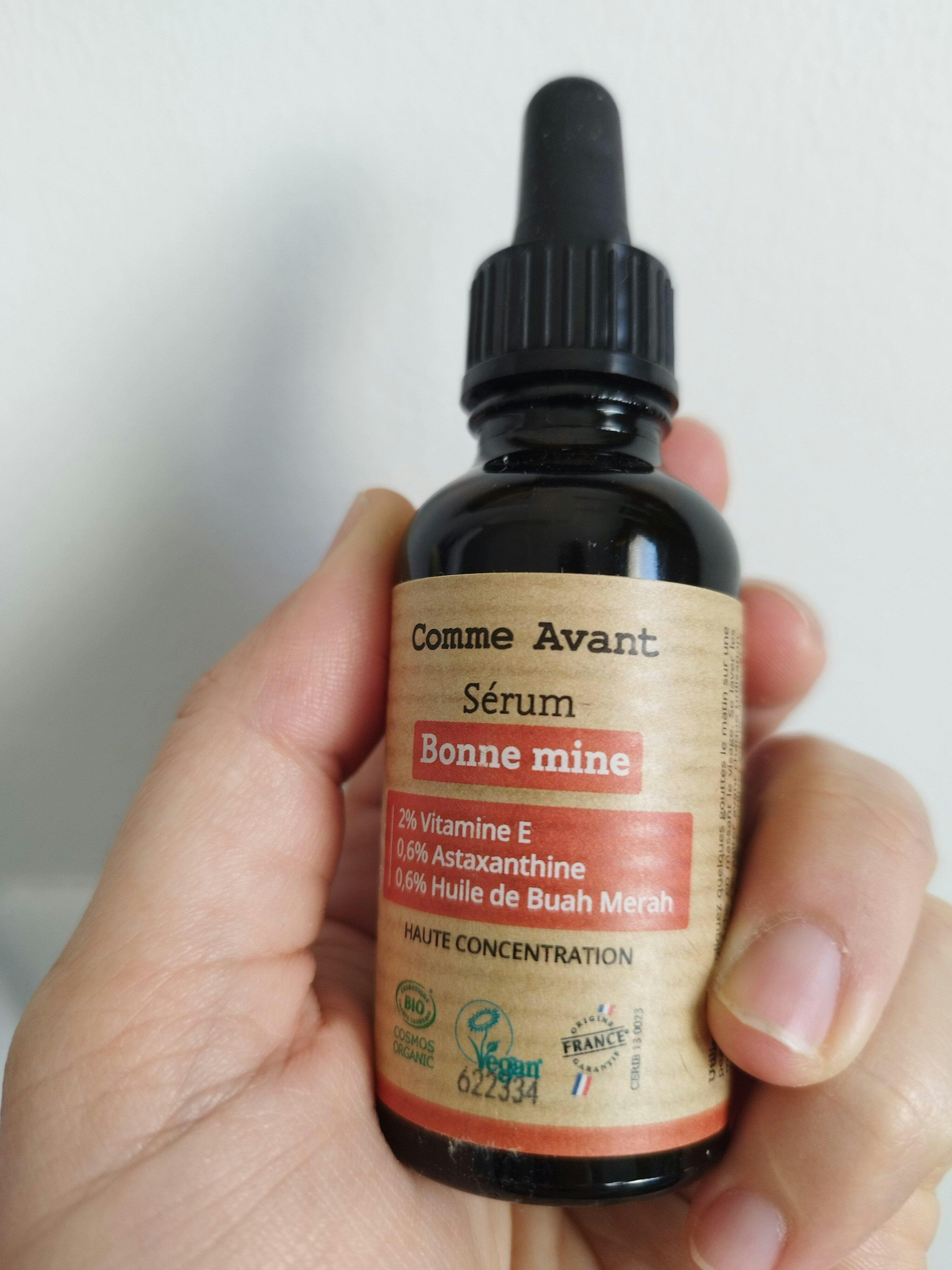 - Astaxanthine : extrait d’algues marines, c’est un pigment naturel de couleur rouge qui participe à la teinte hâlée qu’offre notre sérum. C’est un des actifs majeurs de cette huile bonne mine, et il apporte, en plus de sa couleur, de puissantes vertus anti-inflammatoires et antioxydantes.