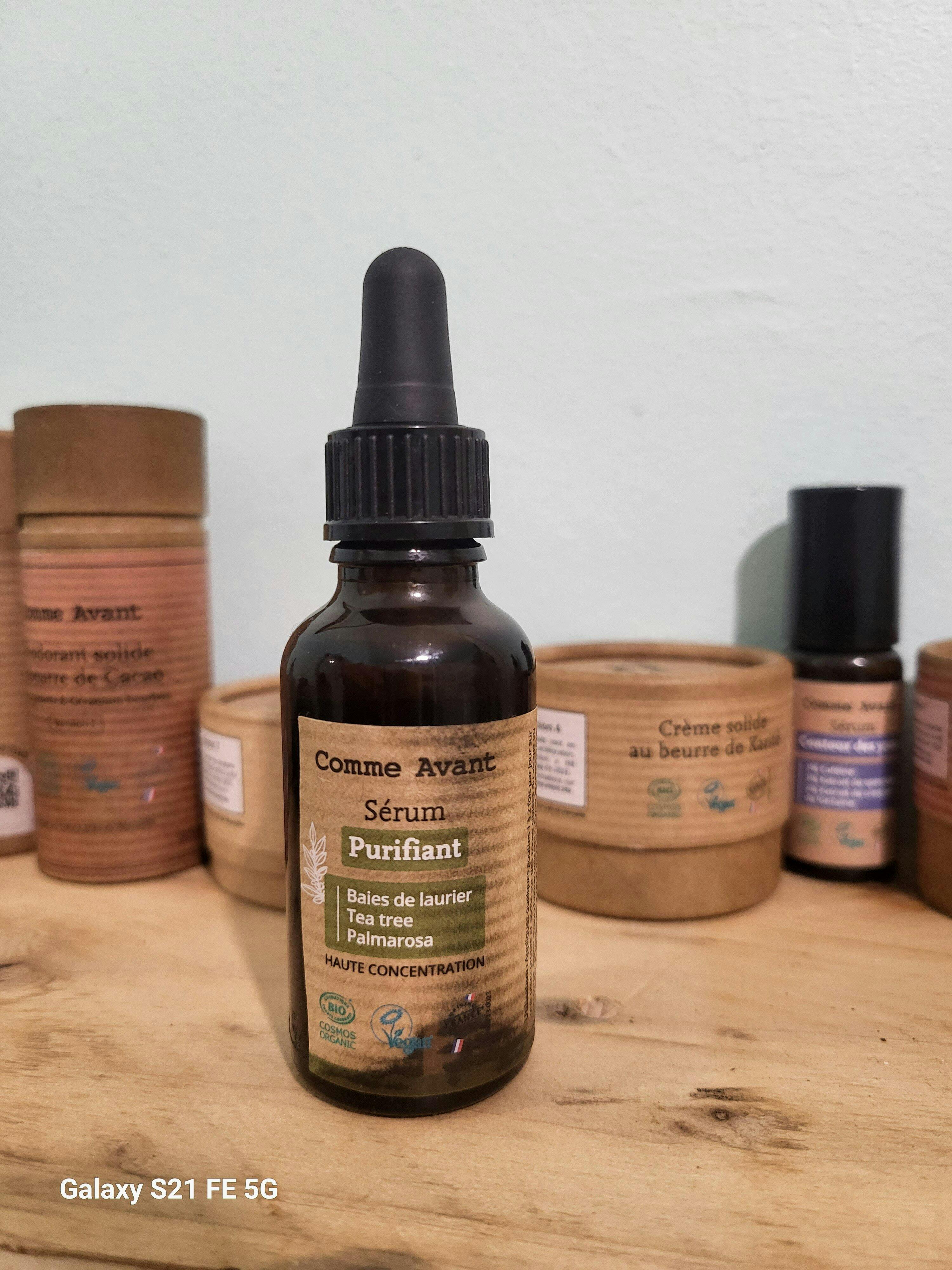 Notre sérum purifiant ne contient que 5 ingrédients et 3 actifs puissants pour lutter efficacement contre les imperfections.
