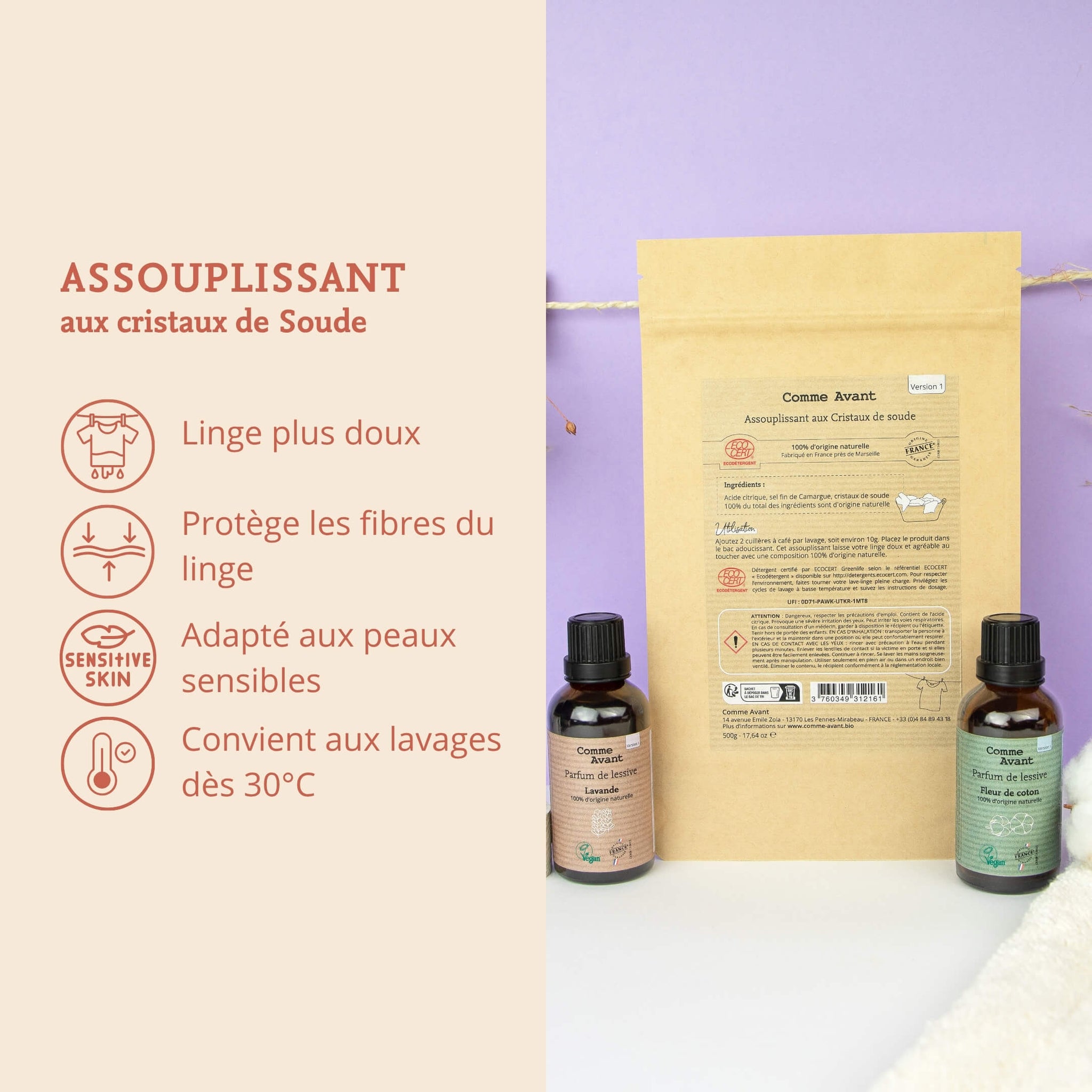 Virginie Tout comme la lessive, c'est un produit efficace. Les 2 ensembles fonctionnent très bien. Avec le parfum en plus, c'est parfait. Merci ! :o)