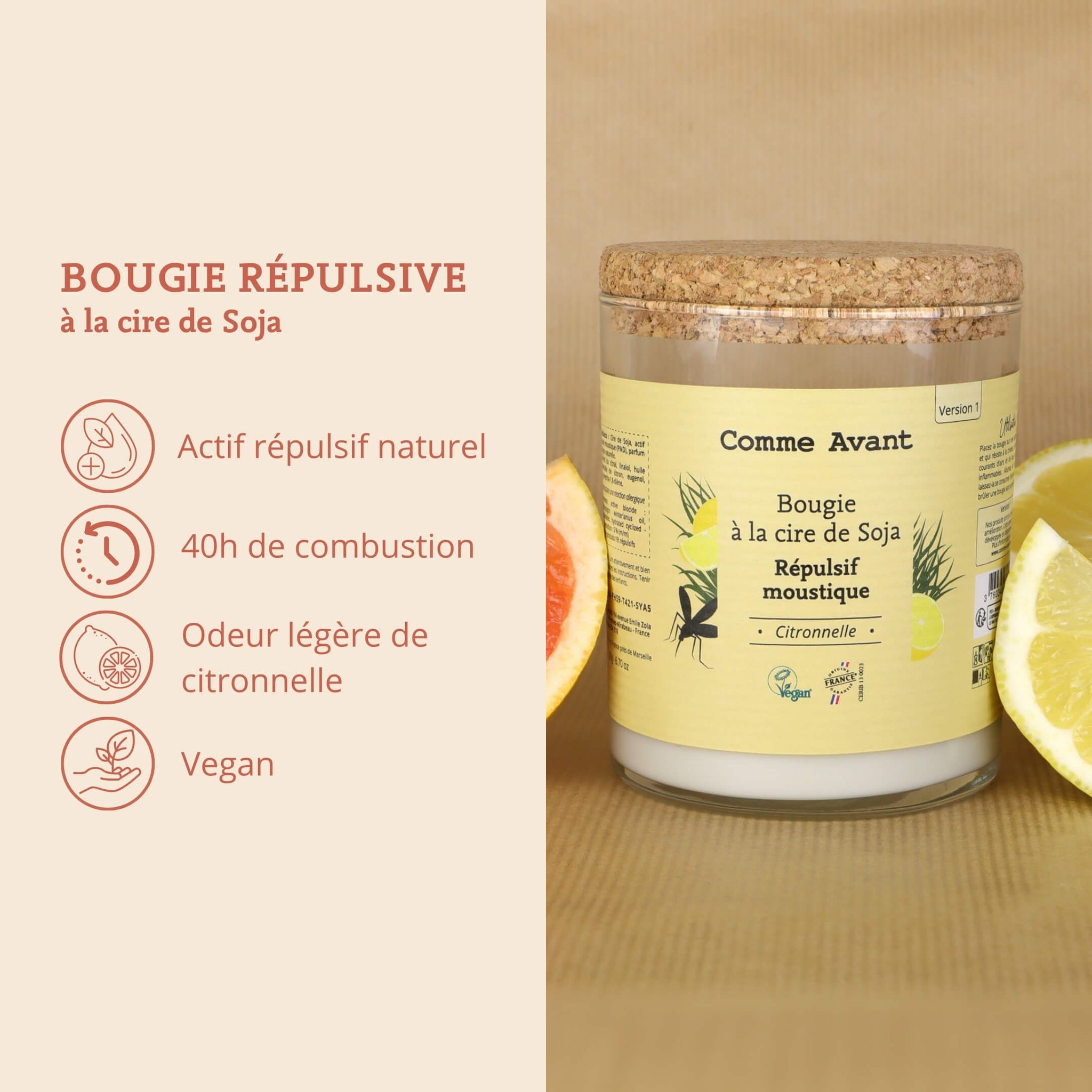 Bougie répulsive anti-moustique à la cire de soja - Version 1