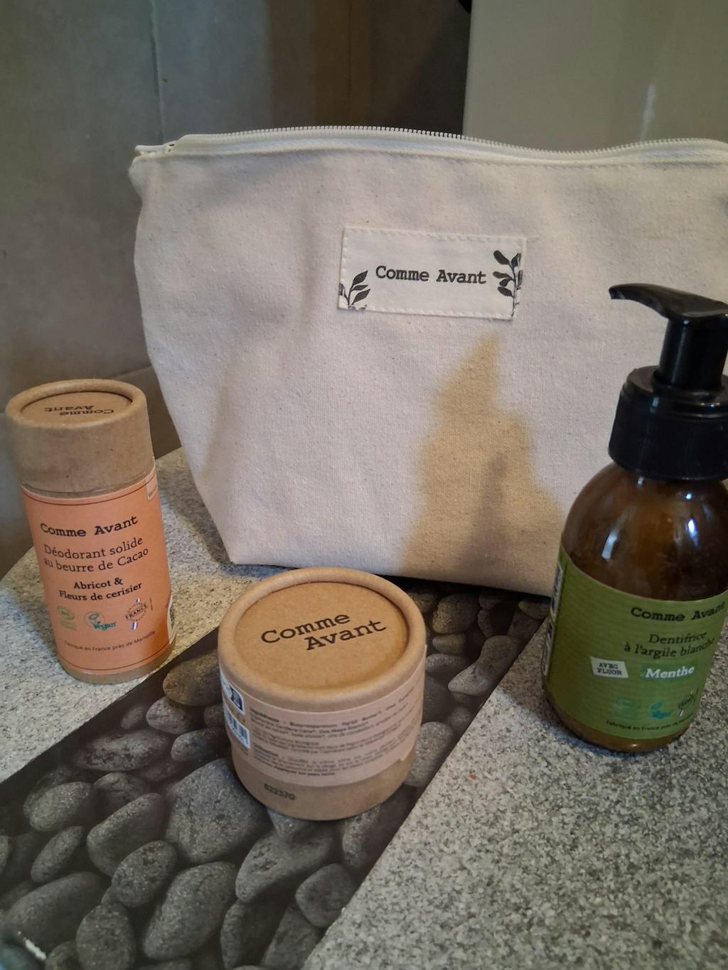 1ère commande avec ce coffret découverte que je ne regrette pas...mes chouchous le savon au beurre de karité et le shampoing (fini le crâne qui gratte avec les couleurs!) le déo tient la journée sans problème et le dentifrice très pratique avec flacon pompe et odeur de menthe très rafraîchissante je n ai pas encore testé la crème solide hydratante j aime ces produits clean avec une composition minimaliste une odeur discrète et la petite trousse toute mignonne j ai déjà effectué une 2ème commande merci pour la qualité de ces produits