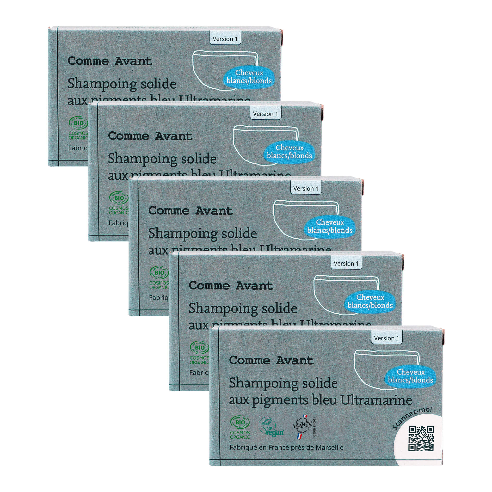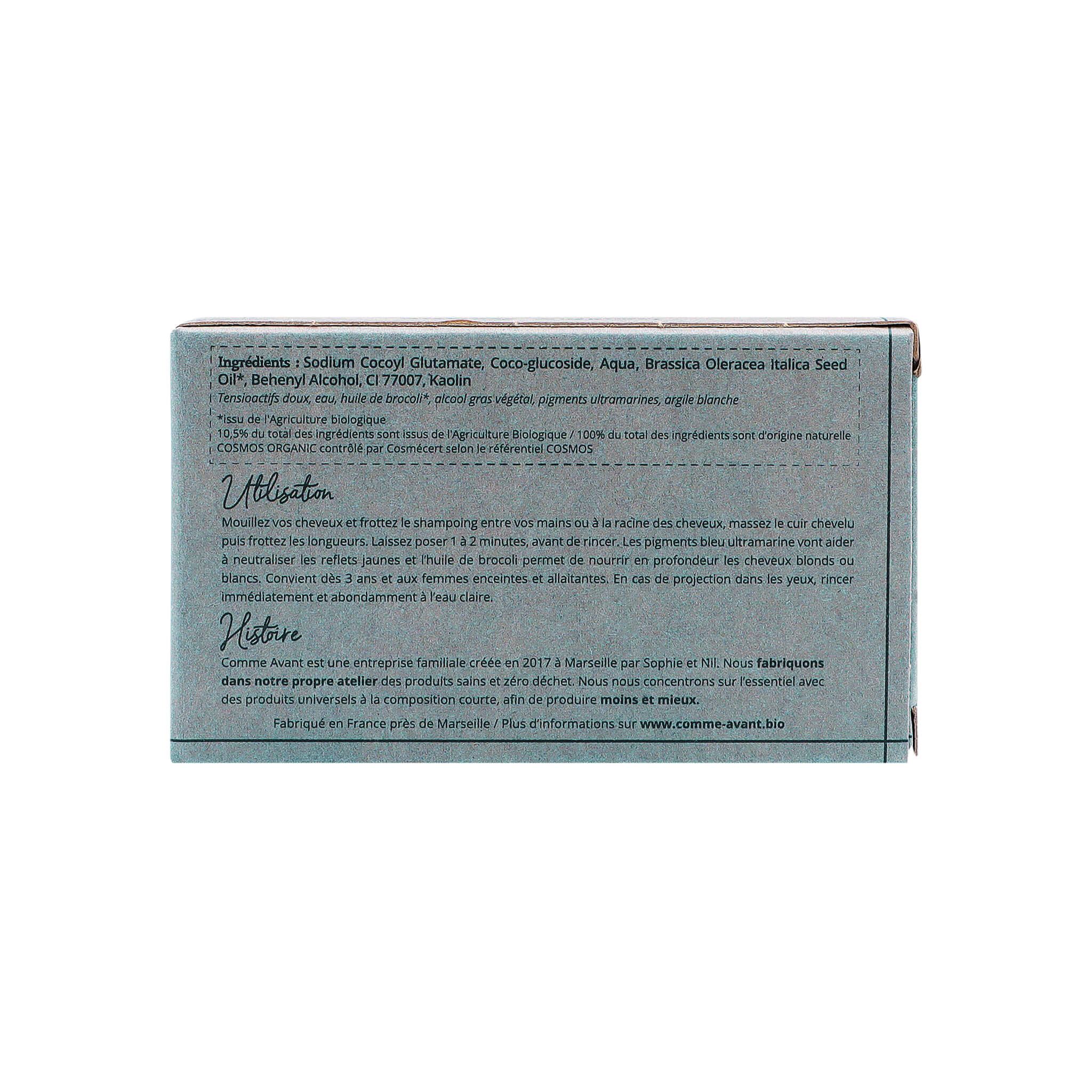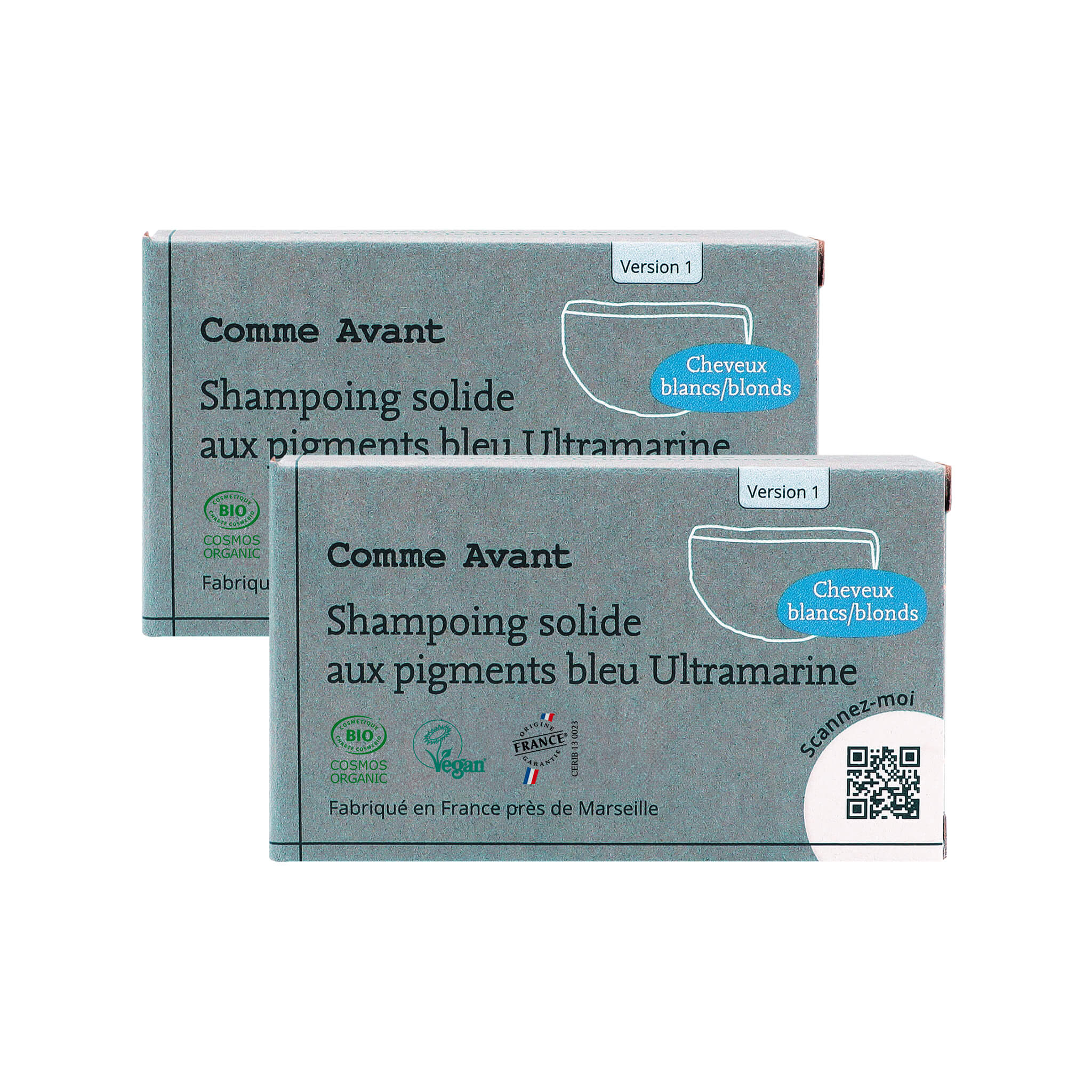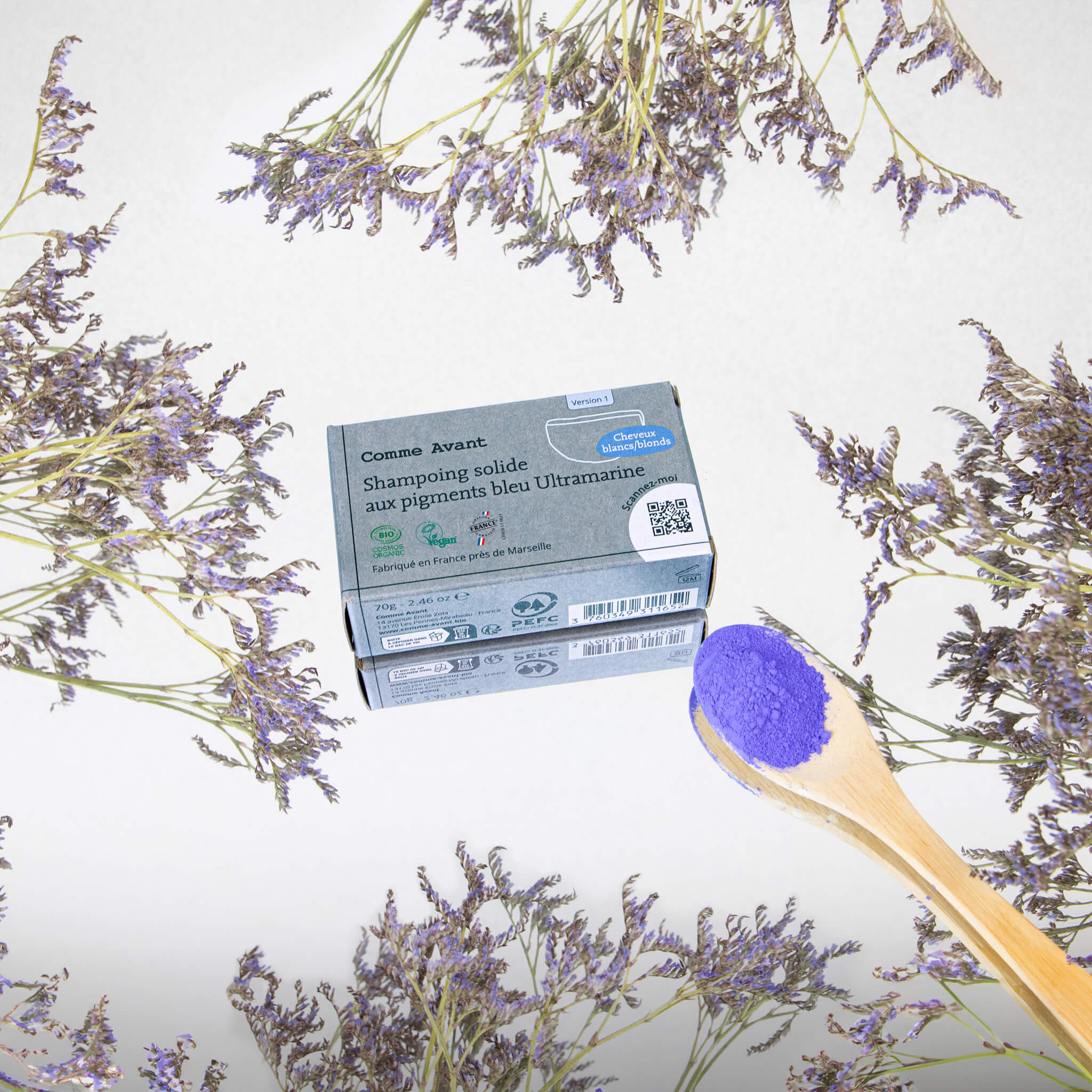 Shampoing solide cheveux blonds blancs aux pigments bleu Ultramarine - Version 1