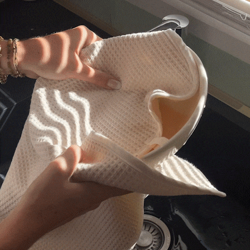 S Le torchon est épais et essuie très bien. Il est de très bonne qualité. Il est vraiment rare de trouver des torchons de cette qualité !